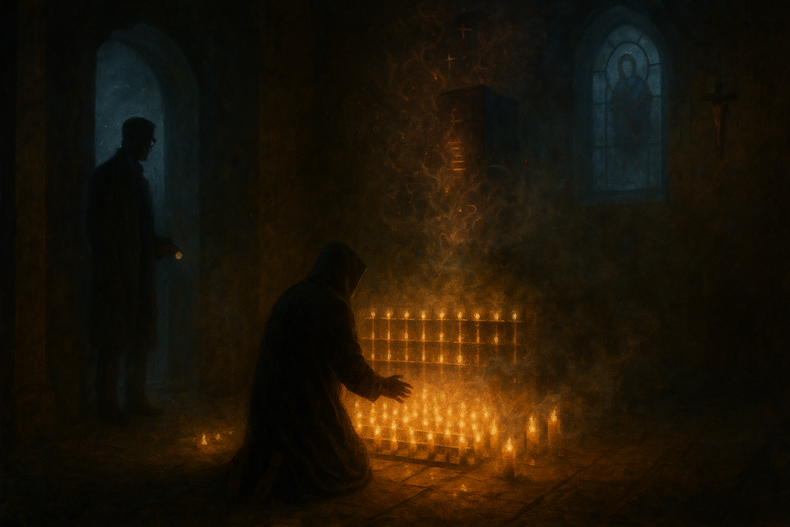 On the last night before demolition, Lucia keeps vigil in a candle-walled chapel, tending a haunted parish server stitched from years of recorded prayers. As storms and sisters close in, she must decide whether her firewall protects the church — or cages something holy.