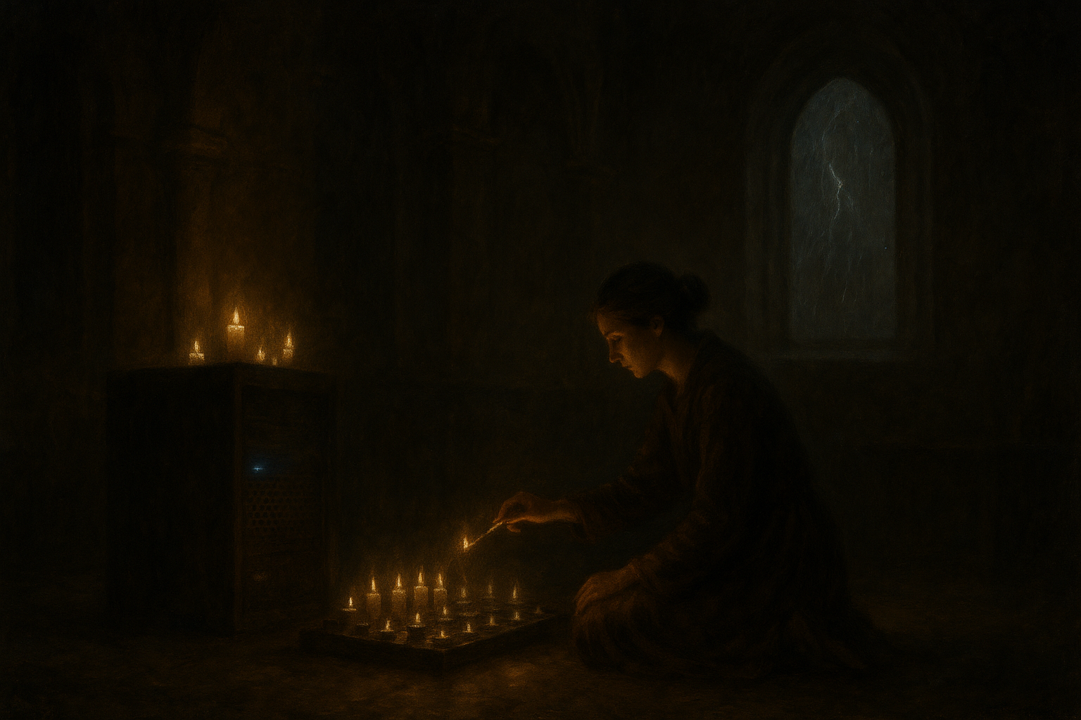 “A small, official vigil space,” she said. “Downgraded hardware. Think… analog-only. People light candles, leave intentions. We log nothing but the fact of their presence. No digital confession. No prayer hotline recordings. Just… light. A place where attention does what the cloud pretends to do.”